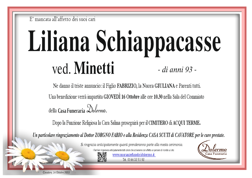 I familiari ringraziano anticipatamente tutti coloro che parteciperanno alla cerimonia funebre