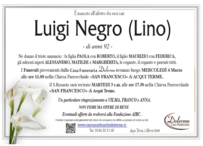 I familiari ringraziano anticipatamente tutti coloro che parteciperanno alla cerimonia funebre