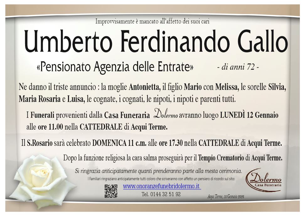 I familiari ringraziano anticipatamente tutti coloro che parteciperanno alla cerimonia funebre