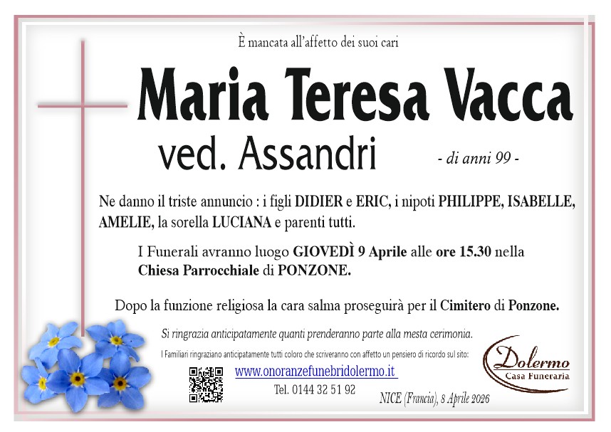 I familiari ringraziano anticipatamente tutti coloro che parteciperanno alla cerimonia funebre e tutti coloro che scriveranno con affetto un Pensiero di Ricordo.